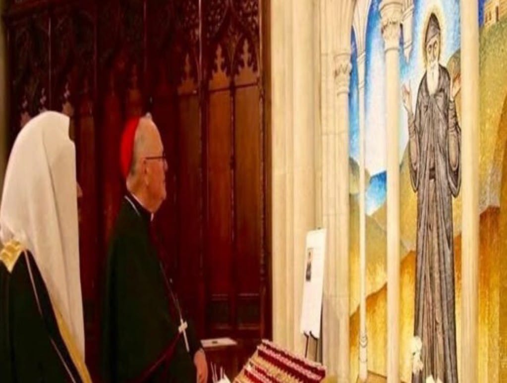 “عندما تتناغم الأديان”… صورة لرئيس رابطة العالم الإسلامي أمام مزار مار شربل في نيويورك
