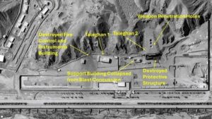 ووفق صور نشرها معهد العلوم والأمن الدوليّ، فقد استُهدف الموقع العسكريّ المشتبه به “تالكان-2” في مجمع بارشين بثلاث قنابل خارقة للتحصينات، بحسب للقناة 12 الإسرائيليّة.