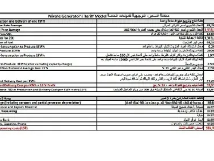 وزارة الطاقة تعلن أسعار تعرفات المولدات لشهر كانون الاول