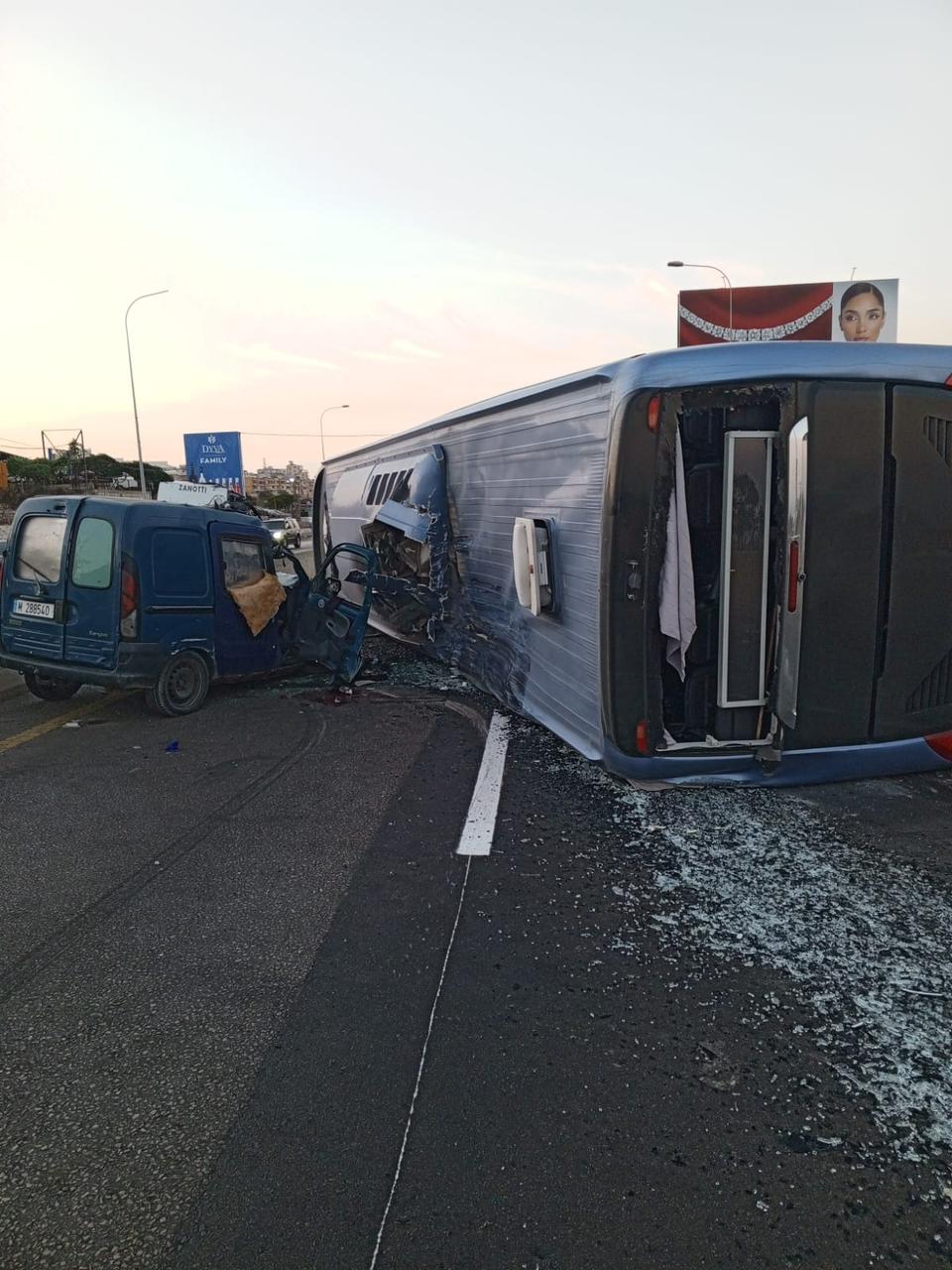 انقلاب حافلة ركاب على طريق بيروت – الجنوب!