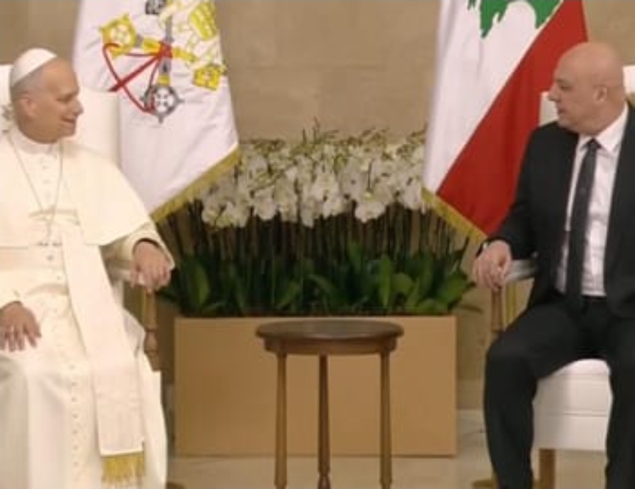 البابا لاوون في بعبدا… لقاء ثنائي وعرض ضوئي
