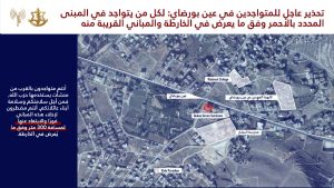 ودعا أدرعي سكان المباني التي قال إنها محددة باللون الأحمر في “الخرائط المرفقة” والمباني المجاورة لها إلى إخلائها فورًا والابتعاد عنها لمسافة لا تقل عن 300 متر، محذرًا من أن البقاء في محيط المواقع المحددة “يعرضكم للخطر”.