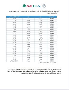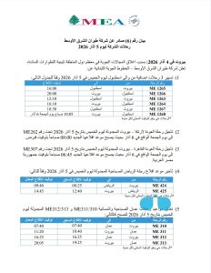 عدّلت شركة طيران الشرق الأوسط رحلاتها، بسبب إغلاق المجالات الجوية في معظم الدول المجاورة.