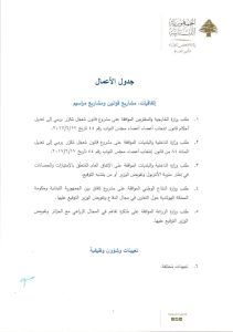 يعقد مجلس الوزراء جلسة عند الساعة الحادية عشرة والنصف من قبل ظهر يوم الأربعاء الواقع فيه 2025/10/29 في القصر الجمهوري مرفق مع جدول أعماله.