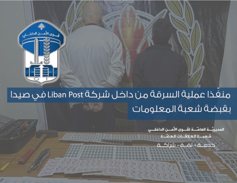 منفّذا عملية السرقة من داخل شركة LibanPost في صيدا بقبضة شعبة المعلومات