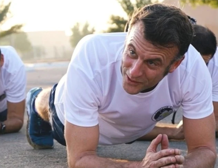ماكرون يستعرض لياقته البدنية مع الجنود الفرنسيين