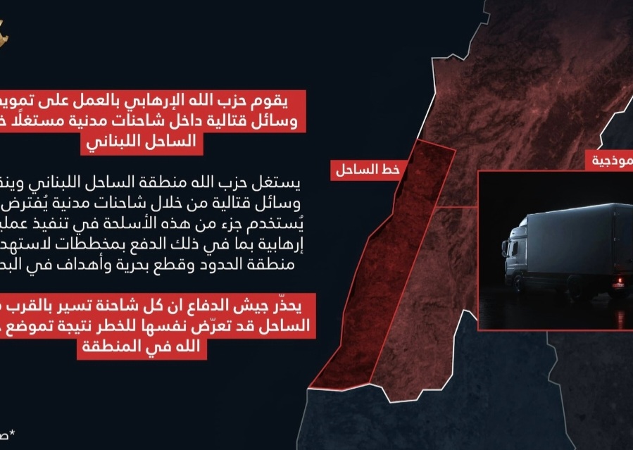 بالصورة: تحذير إسرائيلي لسكان الساحل: شاحنات مدنية تُستخدم لنقل أسلحة حزب الله!