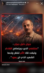 غنوة محمود تشارك اقتباساً مؤثراً لجبران خليل جبران عن الحرب